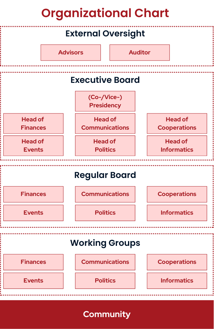 The Special Board covers roles outside the standard departmental structure. Its members take on specialized or representative tasks, support cross-departmental work, and contribute targeted expertise where needed.